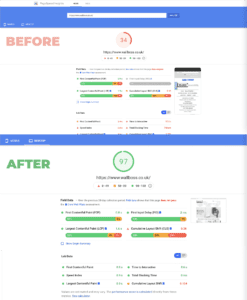 Improved website performance and page speed to achieve Google page speed scores in the high 90s.